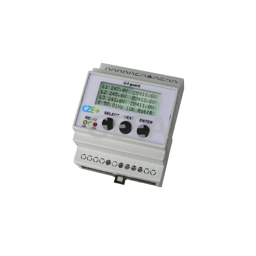 Napäťová a frekvenčná ochrana trojstupňová s nastavením ako jednostupňová alebo dvojstupňová pre inštalácie s prúdom do 16A na fázu.