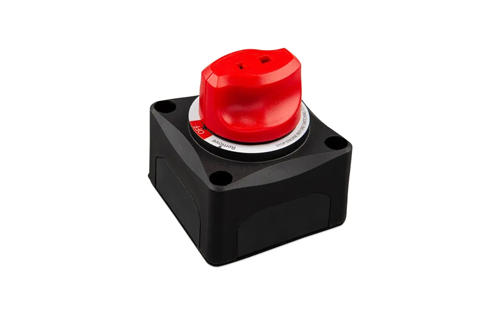 Prepínač batérie ZAP/VYP 275A je vhodný pre batériové systémy do 48 V. Má jedinečný ergonomický a estetický dizajn gombíka. Gombík je odnímateľný z dôvodu izolácie alebo bezpečnosti.